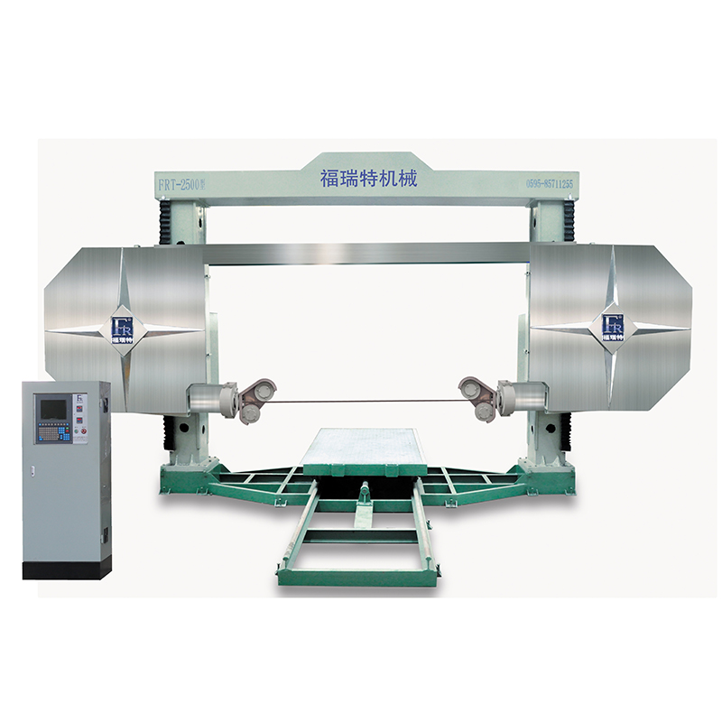 The machine adopts CNC control system, man-machine integration operation interface, supplemented by super high precision servo motor drive, lifting is controlled by four independent guide rail, flywheel around walking up and down the track, stable equilibrium.The flywheel adopts tensioning force balance method, improve the service life of emerald beads rope.The Z axis Y speed can be adjusted according to the texture of stone material, improve the cutting precision of the aliens.In high speed moving parts adopt imported high quality spare parts, and cutting with high efficiency, high cutting precision, high stability, easy and flexible operation etc, especially suitable for the high value of granite, marble plate cutting profile processing.