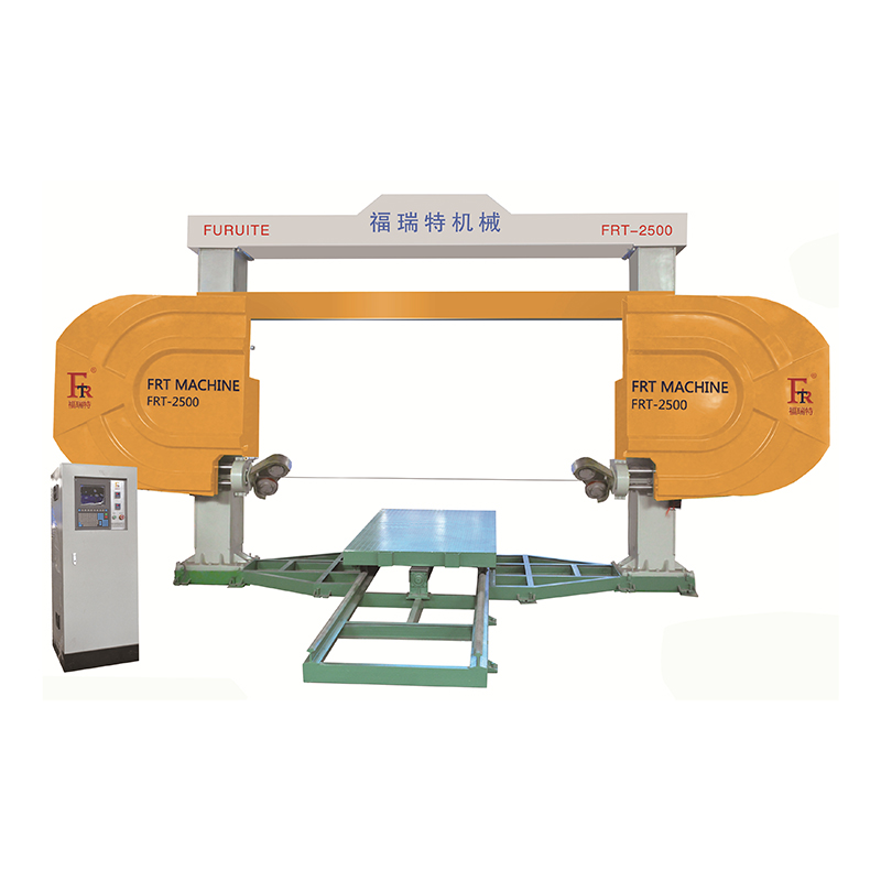 The machine adopts CNC control system, man-machine integration operation interface, supplemented by super high precision servo motor drive, lifting is controlled by four independent guide rail, flywheel around walking up and down the track, stable equilibrium.The flywheel adopts tensioning force balance method, improve the service life of emerald beads rope.The Z axis Y speed can be adjusted according to the texture of stone material, improve the cutting precision of the aliens.In high speed moving parts adopt imported high quality spare parts, and cutting with high efficiency, high cutting precision, high stability, easy and flexible operation etc, especially suitable for the high value of granite, marble plate cutting profile processing.